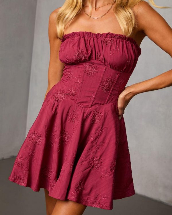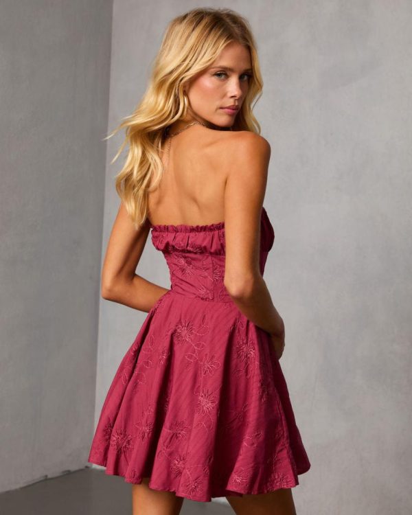 Flirt with florals this fall in the Elane Stitched Floral Mini Dress, a fresh take on femininity with a touch of edge. Made from textured linen crepe, this mini features an allover stitched tonal floral design that adds depth without the drama. The strapless ruffle neckline brings a romantic flair, while the non-slip silicone grip trim keeps everything perfectly in place (no fuss, all style).