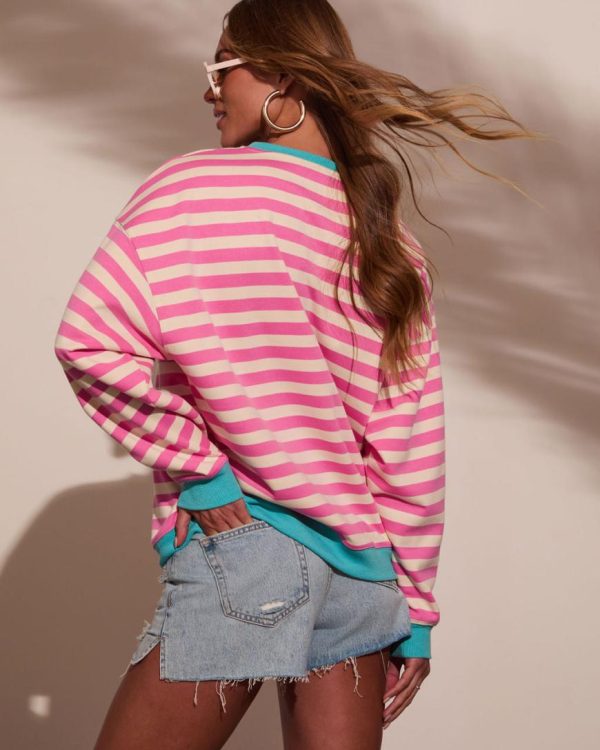 Add a pop of playful charm to your spring wardrobe with the Marcey Striped Sweatshirt. Made from soft, breathable jersey fabric, this sweatshirt is perfect for those in-between spring days when you need a little extra comfort without sacrificing style. The classic striped design gets a modern twist with bold contrast trims that make this piece stand out.