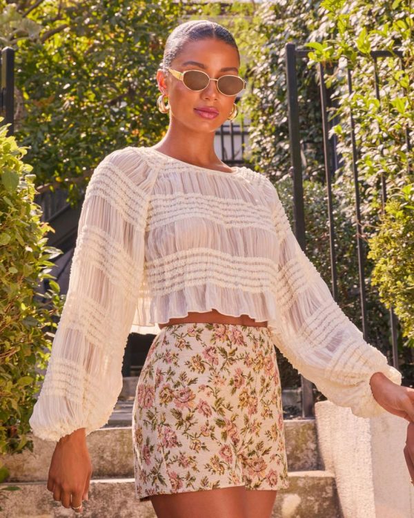 Soft, sweet, and a little bit spellbinding, the My Dearest Peasant Crop Top is a love letter to effortless romance. Made from airy, crinkle semi-sheer crepe chiffon, it’s light as a whisper and just as captivating. Smocked ruffle panels bring texture and a flirty fit, while blouson sleeves with elastic cuffs add a soft, dreamy volume. It’s the kind of top that makes you feel like the main character, whether you’re lost in a moment or simply dressing like one might happen.