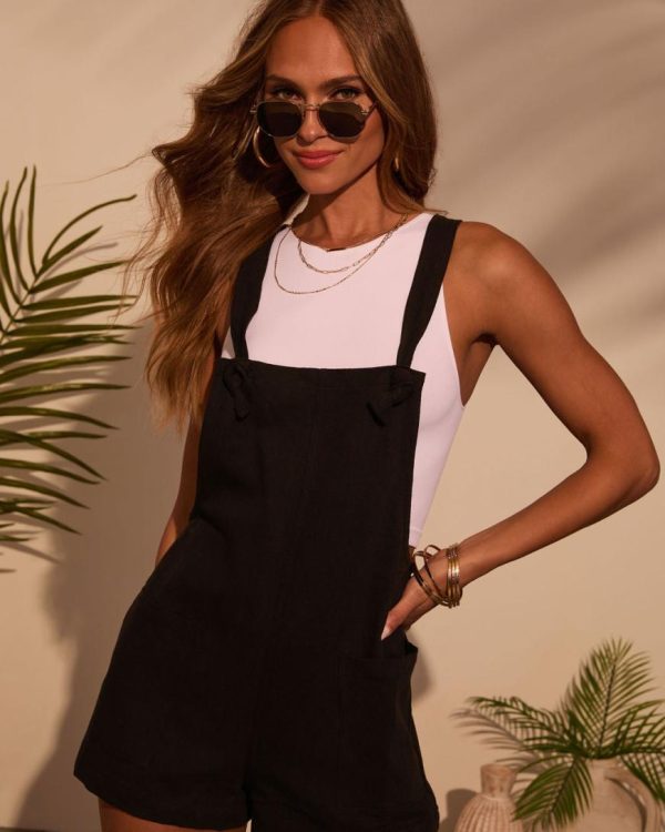 Northwest Cotton Linen Pocketed Romper Black | Women VICI Rompers