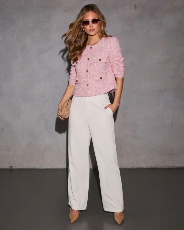 Bring a touch of modern flair to your wardrobe with the Seleia Tweed Single Breasted Jacket. The rich tweed fabric brings texture and depth, while etched front button closures add a touch of vintage-inspired charm. Designed to elevate any look, this single-breasted silhouette is perfect for layering over a blouse for a chic workday ensemble or pairing with denim for a stylish weekend outing.